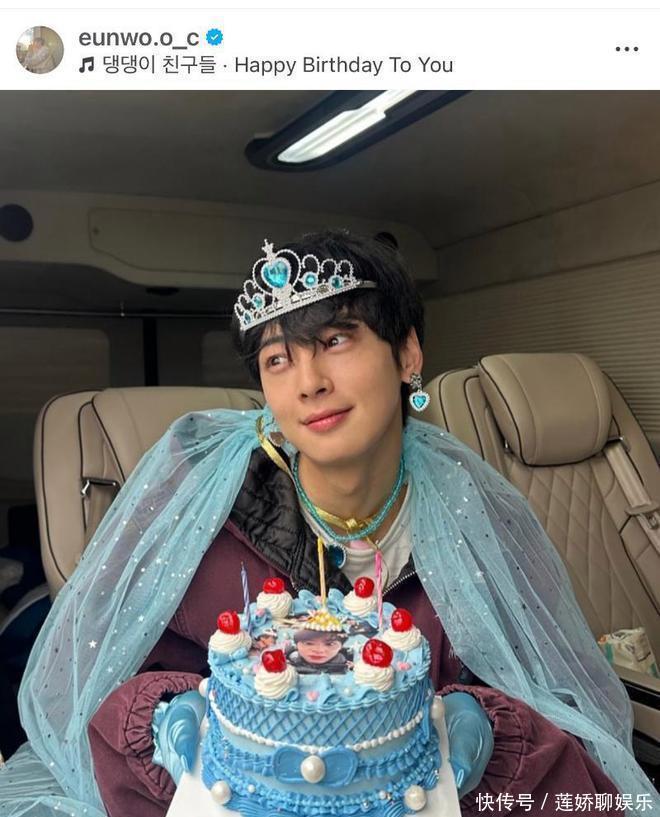 几天前刚过了28岁生日的车银优,在自己的INS也上传了同款公主造型打扮的庆生照。