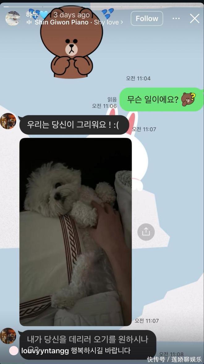 还有一段聊天截图,当中拍到了狗狗,表示自己和它都很想你~