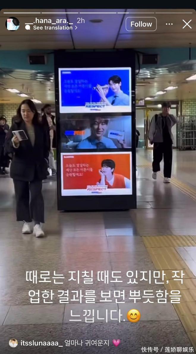 虽然但是,账号主人似乎很活跃,不断在上传自己的限动,当中包括特地拍摄了在韩国地铁站中的车银优广告。